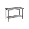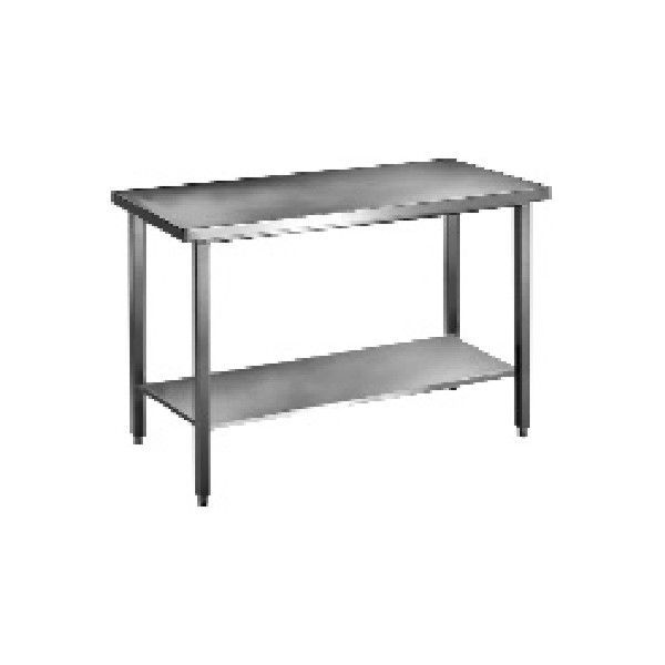 Realizata din otel inox AISI 304 cu finisaj Scotch Brite. Blat de lucru cu margini rotunjite. Structura fono-absorbanta. Este prevazuta cu cadru ranforsat. Picioare tubulare cu sectiunea patrata (40 x 40 mm) si inaltime reglabila. Masa poate fi prevazuta cu polita, sertare si roti.