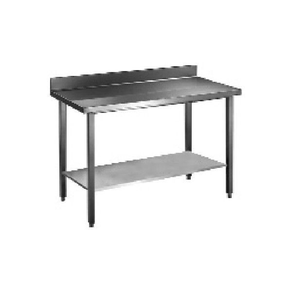 Realizata din otel inox AISI 304 cu finisaj Scotch Brite. Blat de lucru cu margini rotunjite. Rebord 100 mm. Structura fono-absorbanta. Este prevazuta cu cadru ranforsat. Picioare tubulare cu sectiunea patrata (40 x 40 mm) si inaltime reglabila. Masa poate fi prevazuta cu sertare.
