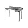 Realizata din otel inox AISI 304 cu finisaj Scotch Brite. Blat de lucru cu margini rotunjite. Rebord cu inaltimea de 100 mm. Dimensiuni chiuveta: 400 x 300 x 200 mm. Structura fono-absorbanta si ranforsata. Picioare reglabile tubulare cu sectiune patrata 40 x 40 mm. Prevazuta cu supraplin si drenaj. Poate fi prevazuta cu sertare, polita, sifon si buson.