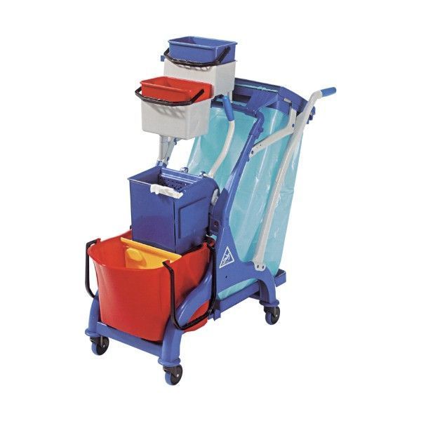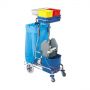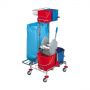 Carucior multifunctional din plastic cu roti, suport plastic pentru sac, galeata 28 l, sistem clatire, 2 galeti 4 l, carlig plastic, 1070 x 560 x 1110h mm