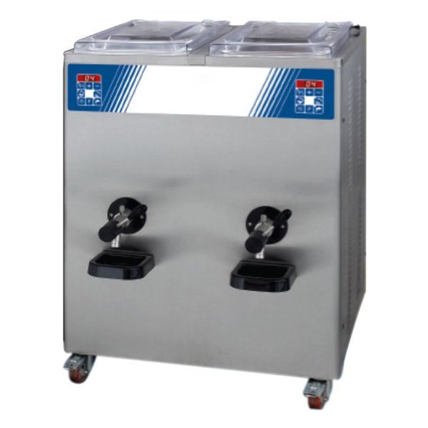 Modelele MULTICOOL sunt prevazute cu 2 cilindrii verticali separati. O singura masina contine un laborator complet. Permite amestecarea si incalzirea unui sortiment in timp ce altul este racit si inghetat. Este solutia ideala pentru laboratoarele mici si pentru producerea serbetelor, inghetatei, cremelor de patiserie si multor altor specialitati, totul intr-o singura masina. Permite pasteurizarea si inghetarea in cele mai bune conditii. Alimentare 400 V - 50 - 3.