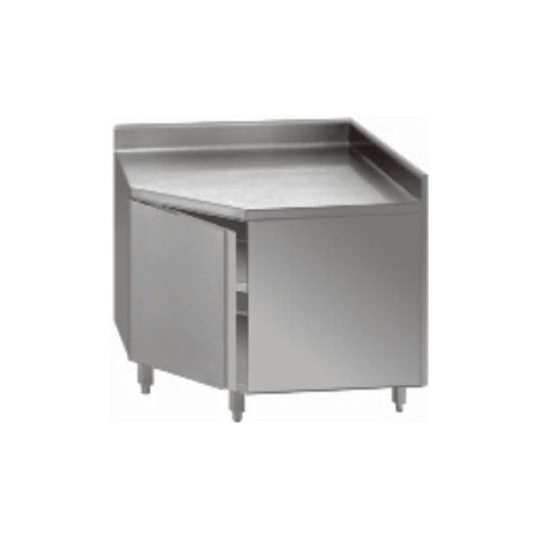 Realizata din otel inox AISI 304 cu finisaj Scotch Brite. Este prevazuta cu blat de lucru si structura fono-absorbanta si ranforsata. Rebord 100 mm. Usi fono-absorbante si polita reglabila pe inaltime. Picioare tubulare cu sectiune patrata 40 x 40 mm.