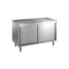Realizata din otel inox AISI 304 cu finisaj Scotch Brite. Este prevazuta cu blat de lucru si structura fono-absorbanta si ranforsata. Usi glisante fono-absorbante si polita reglabila pe inaltime. Picioare tubulare cu sectiune patrata 40 x 40 mm, reglabile pe inaltime. Poate fi dotata cu roti.